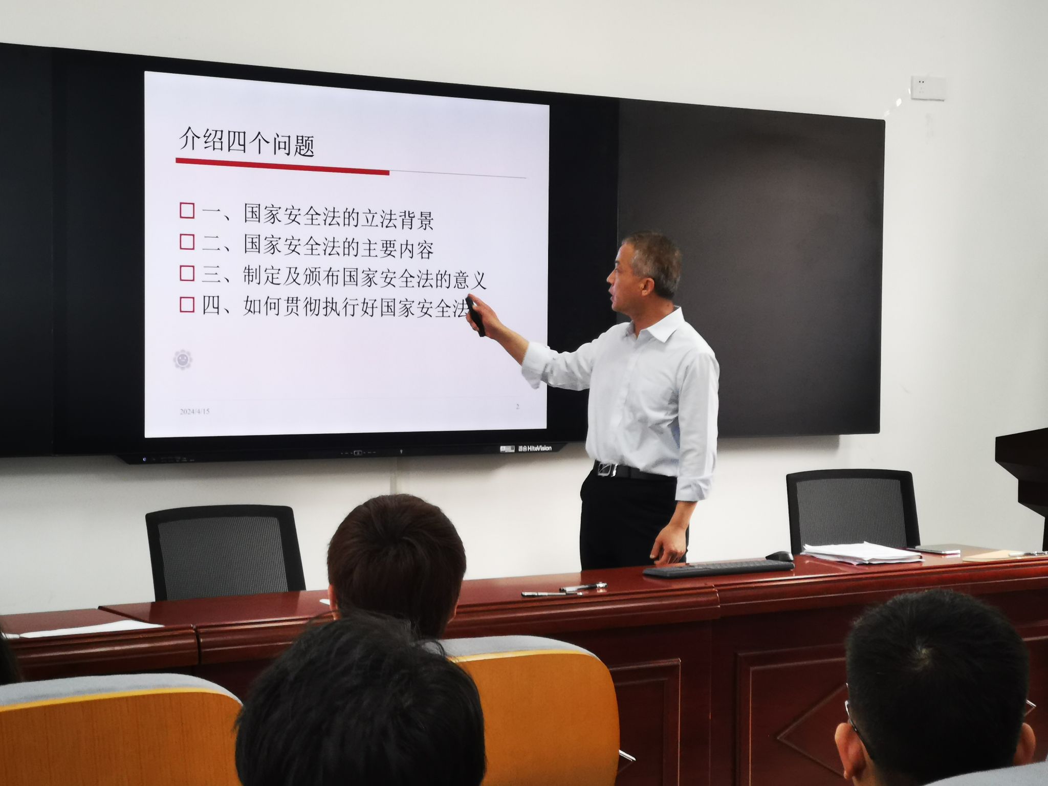 4月15日,老司机 在龙赛理科楼北楼314报告厅举办2024年全民国家安全教育宣讲会,学院党政领导、组织员、学生党建辅导员、各教工党支部书记、学院党建中心各负责人参加,会议由学院党委书记朱学庆主持并宣讲。