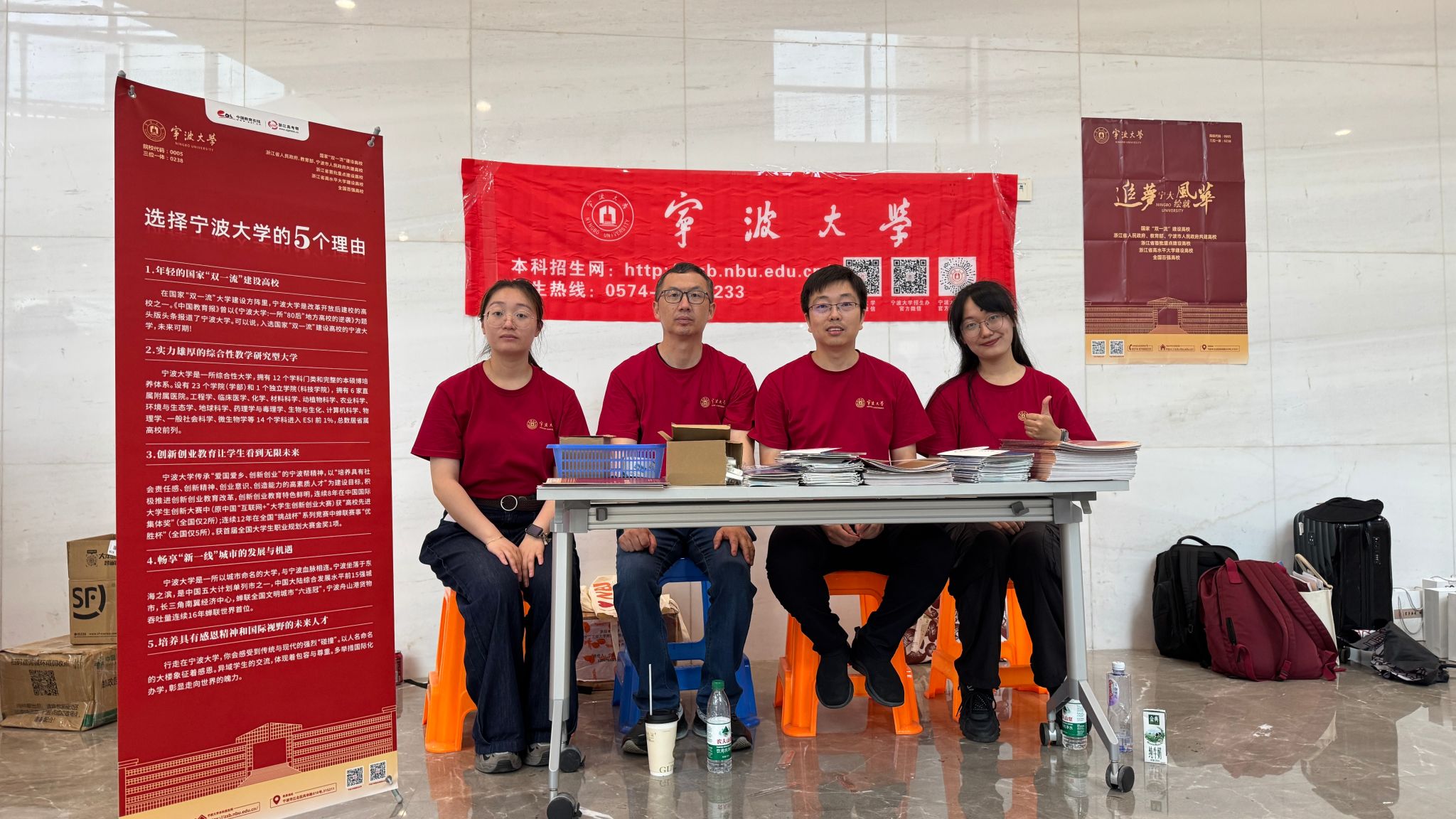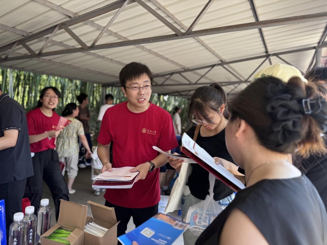 在老司机 的宣传摊位前,来领取招生简章、咨询的考生和家长络绎不绝,考生和家长对于老司机 的认可和热情令老师们激动不已。宣讲教师们耐心地讲解着宁大的招生政策,解答关于投档位次、专业前景、阳明创新班政策等方面的疑问。很多考生对物理学(拔尖人才创新班)、微电子科学与工程等专业表现出浓厚的兴趣,期望能在金秋九月与宁大相约。