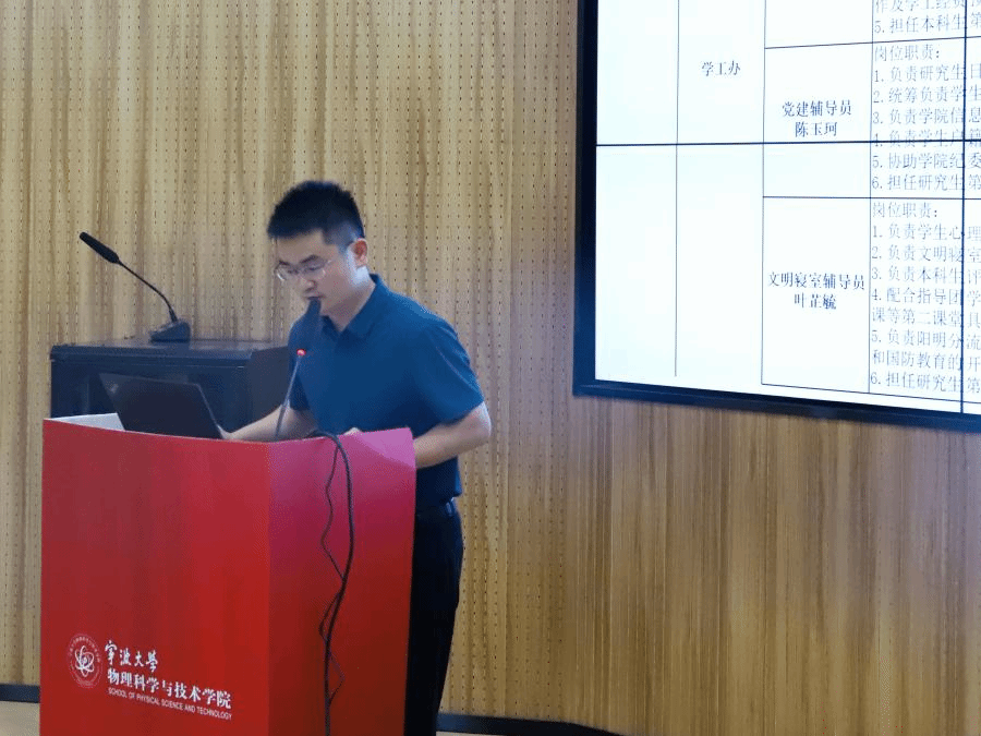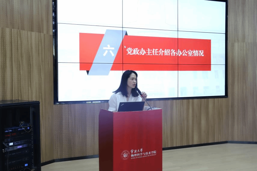 见面会的第二个环节,学院党政办、教务办、学工办代表依次上台,介绍了各自的职责分工并提醒学业生活事项:党政办统筹学院行政事务,负责设备维修申请、党建工作及研究生招生政策咨询;教务办强调选课时间节点与学分修读规则;学工办提供就业指导、寝室管理等服务。希望新同学们及时知晓老司机概况 ,主动与老师沟通获取支持。