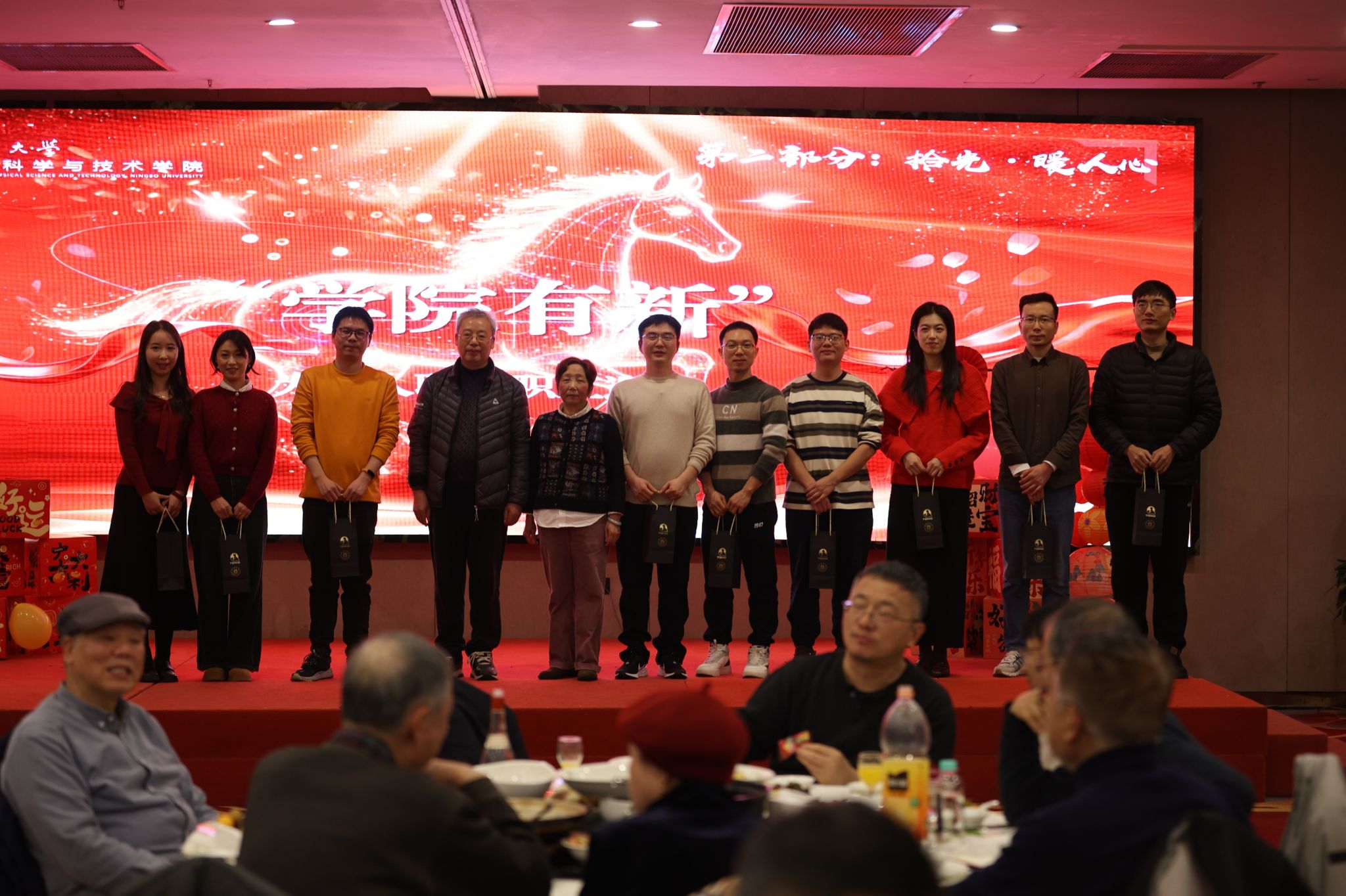 “学院有新”环节则饱含传承之意,退休教师代表为新入职教职工赠礼寄语,象征着学院精神的接续与发扬,体现了物理学院尊师重教、薪火相传的优良传统。