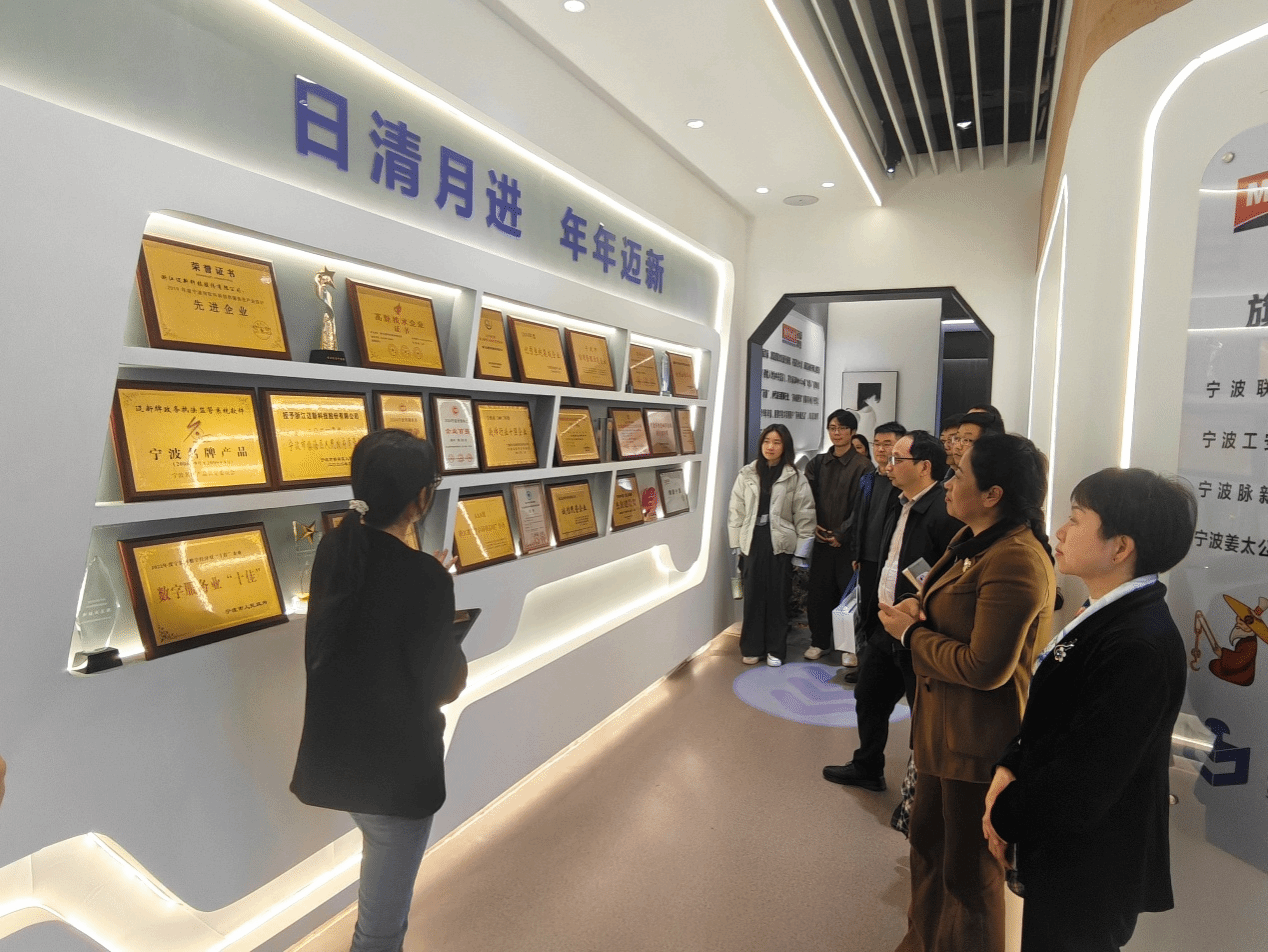 浙江迈新科技股份有限公司执行总经理张淑河携公司相关负责人对学院一行的到访表示热烈欢迎。在企业负责人的陪同下,学院师生参观了公司的企业展厅,详细了解了迈新科技作为国家高新技术企业的发展历程、业务布局及核心竞争力。