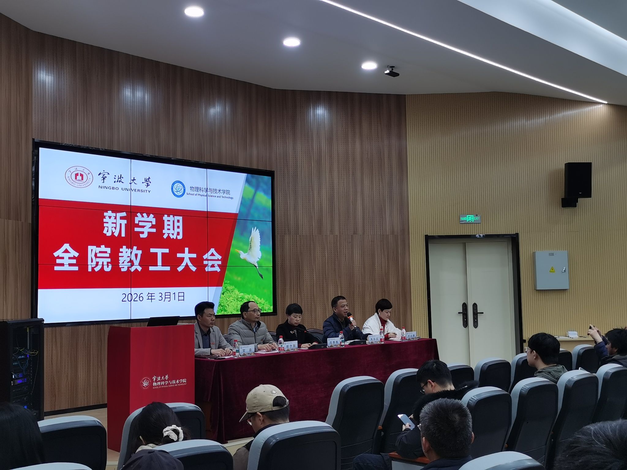 3月1日,我院召开新学期全院教工大会并传达学校2026年寒假中层领导干部扩大学习会精神。全院教工参加会议,会议由院党委书记朱学庆主持。