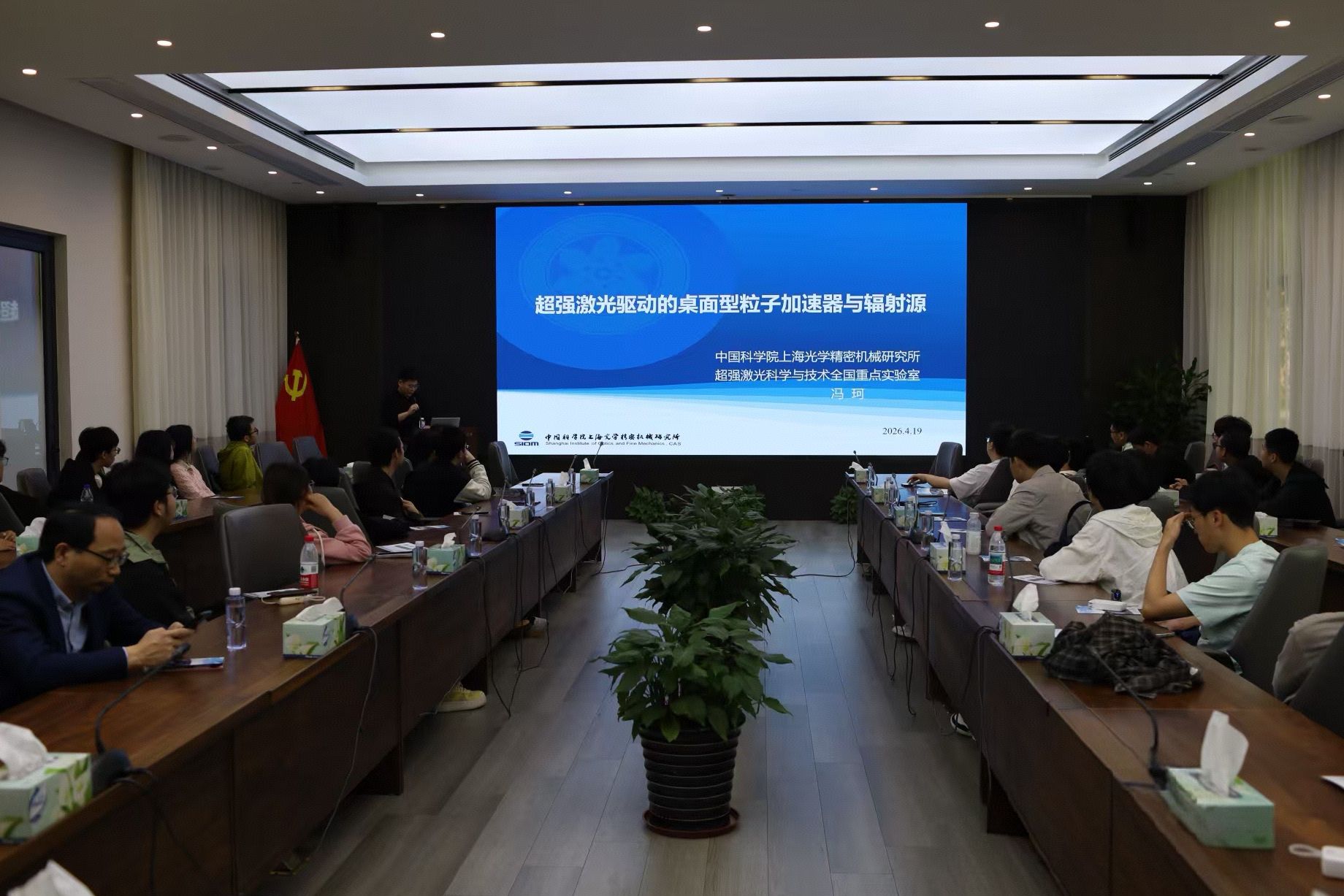 超强激光科学与技术重点实验室冯科研究员为学院师生作《超强激光驱动的桌面型粒子加速器和光源》的专题报告,围绕强场激光物理、激光尾场加速原理与小型化自由电子激光前沿成果展开讲解,结合“羲和装置”等重大科技基础设施进展,解读超强激光的国家战略价值与行业发展趋势,为现场师生带来一场兼具科技前沿与使命担当的学术浸润。随后,实验室负责老师从简介、研究方向与成果、影响力及研究生培养情况等维度,介绍了实验室的建设历程、前沿突破与育人平台,让大家真切感受到超强激光领域的科研魅力与广阔前景。