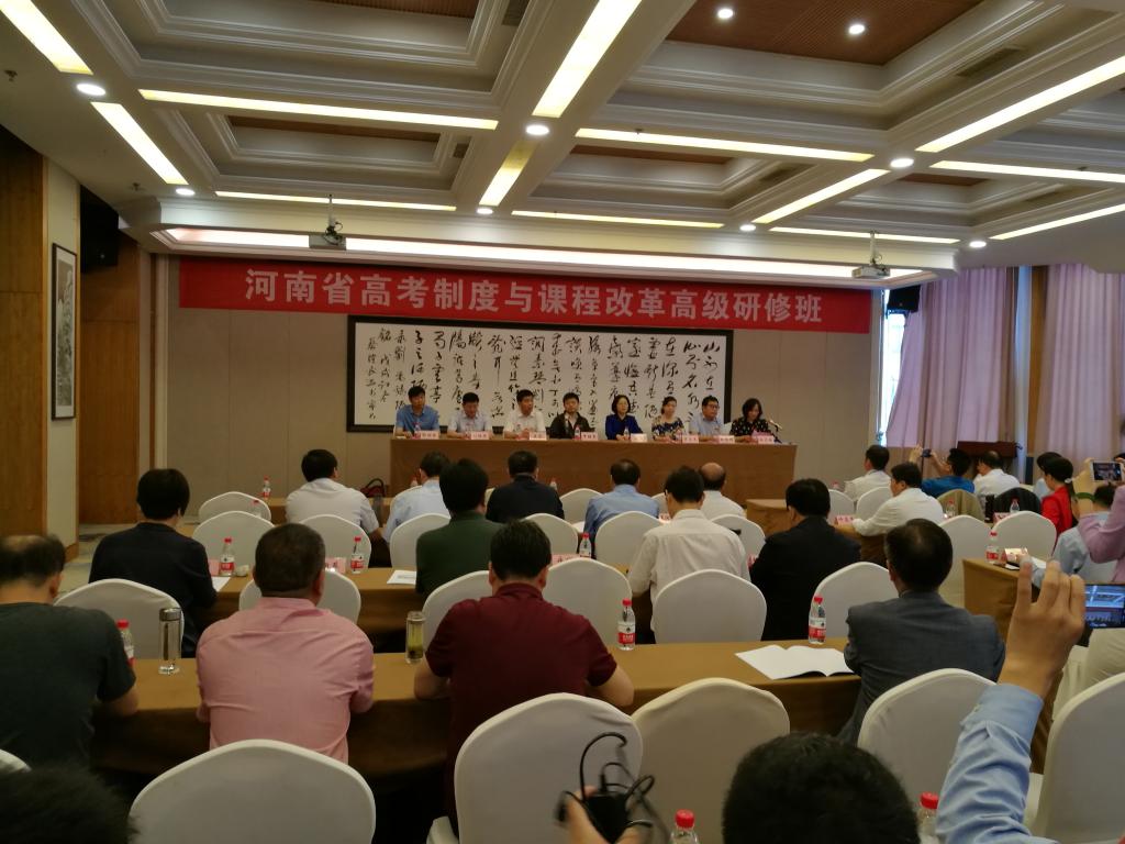 2019年5月21日上午,河南省高考制度与课程改革高级研修班在宁大宾馆白鹭厅顺利开班,来自河南省教育厅以及省辖市、直管县(市)教育局长50余人参加培训。本期培训班由河南省教育厅、中原出版传媒集团主办,老司机 承办。