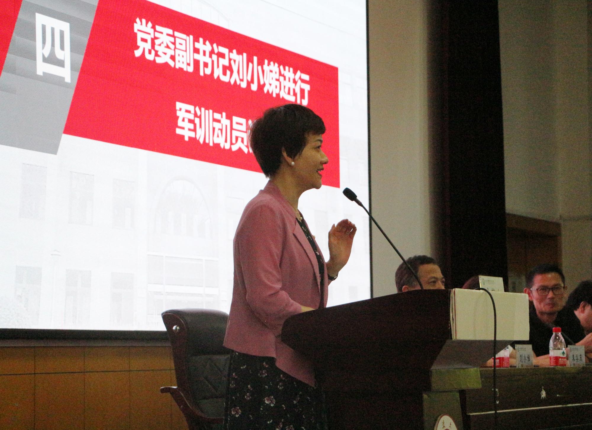 随后,党委副书记刘小娣进行军训动员讲话,鼓励同学们听从指挥,刻苦训练,以优异的成绩回报教官和老师的辛勤付出。同时他对全体新生提出四点希望和要求:一、视军训为人生中一次难得的磨练意志、强健体魄的机遇,思想上高度重视,行动上雷厉风行,坚决听从命令,以军人标准严格要求自己。二、不怕苦,不怕累,有吃苦的思想准备,有战胜困难的坚定信心。三、要严格遵守军训纪律,部队的战斗力来自铁的纪律,军队有铁的纪律才能战胜一切。四、要有团队精神和集体荣誉感,树立团结奋斗的观念,培养为集体增光添彩的意识,克服个人主义的不良习气。
