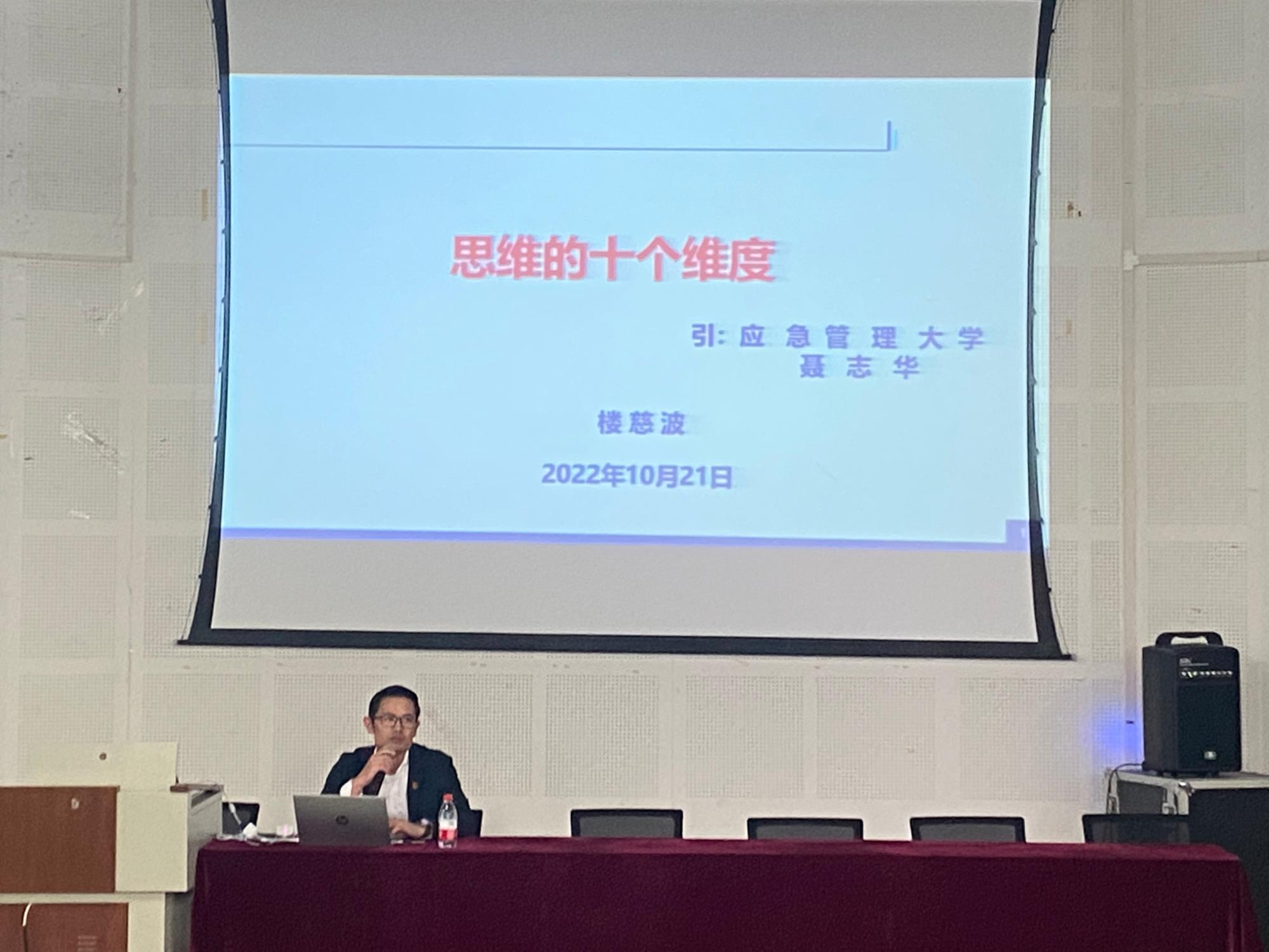 把握力度与新度,敢想敢拼与时俱进。经过一番讲解后,楼老师由小及大,讲述了思维的力度和新度。他指出当代大学生学习知识只是一方面,同学们还需要把握好学习、思维的力度,要“会想敢想,会干敢干”。拿出决定性的成果。不仅如此,楼老师还强调当今社会发展迅速,就算是教授也需要时刻学习前沿的新事物来解决问题,大学生应当积极学习课外知识来提升自己。