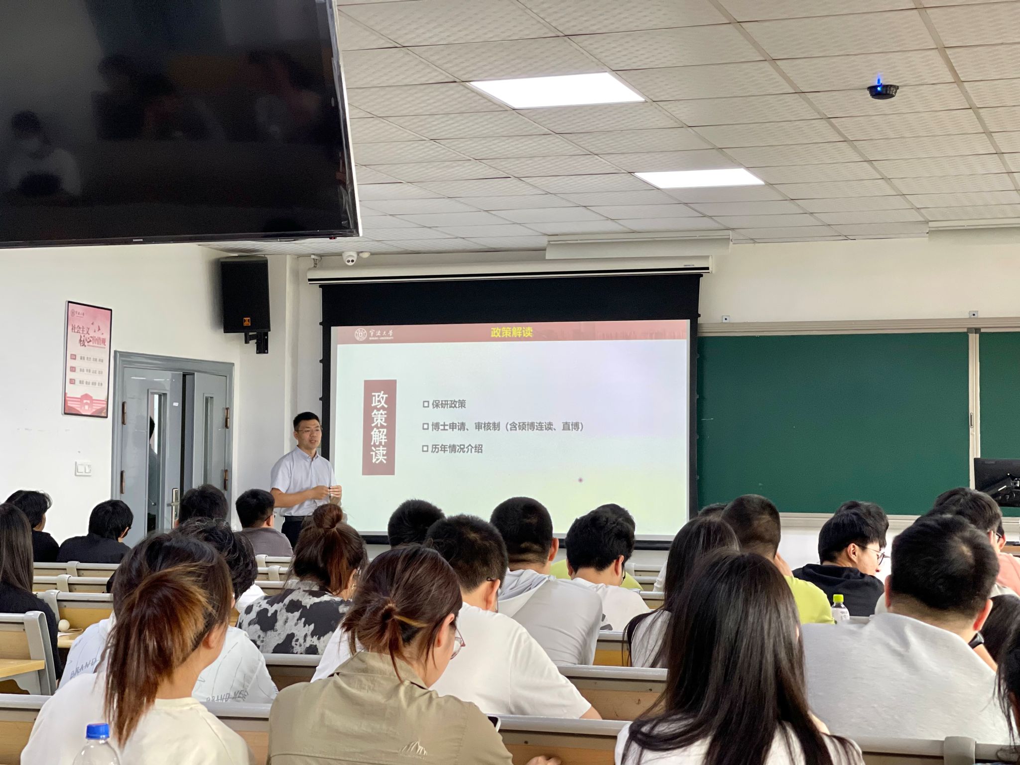 2023年6月29日下午,我院在8-101举办了2024级硕博招生宣讲会。宣讲会由学院分管研究生教育工作的高淼老师主讲,活动主要面向本校2020级本科生、2021级硕士生,现场吸引了百余名学生参加本次宣讲会。