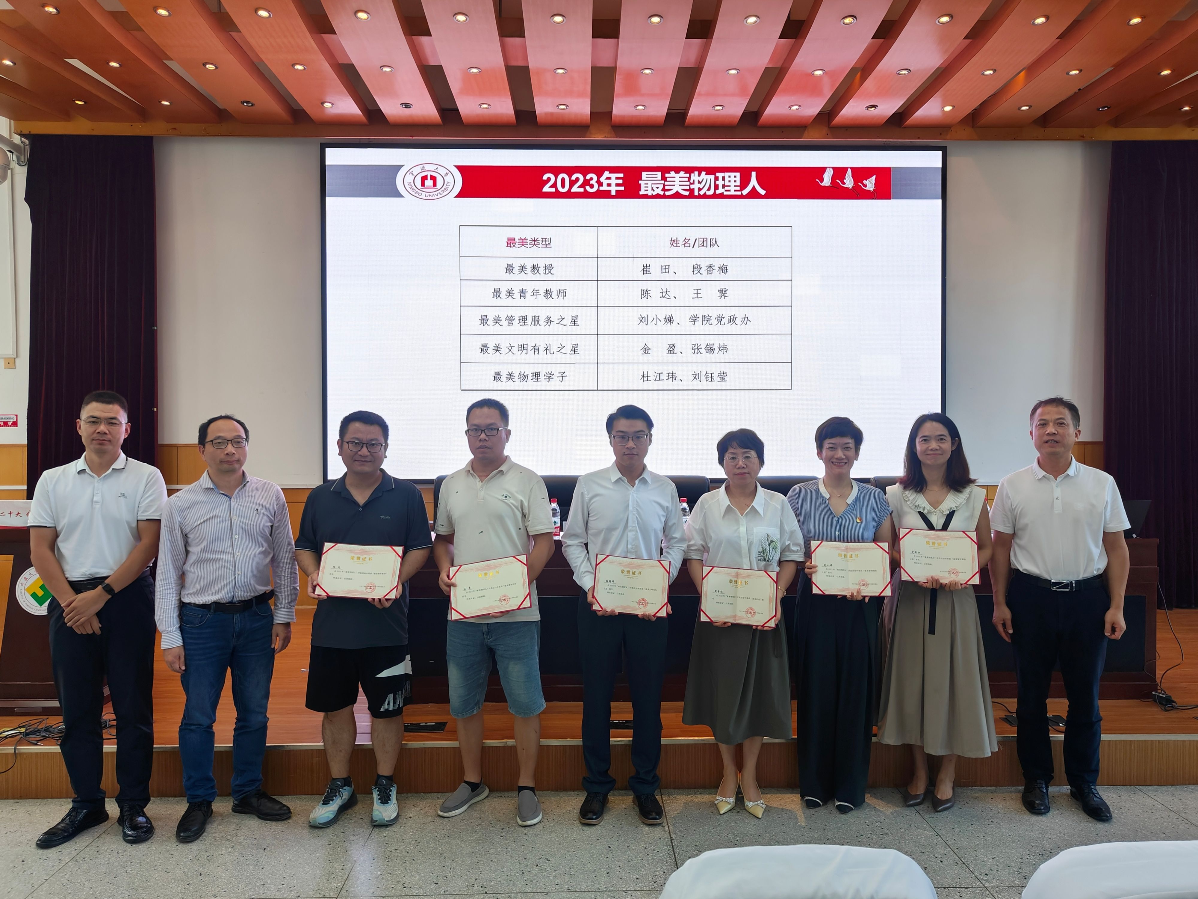 值此教师节到来之际,会上举行了2023年“最美物理人”颁奖仪式,学院希望受表彰的先进个人和团队发挥典型的示范、带动和辐射作用,继续讲好“为党育人、为国育才”的初心故事,为学院的高质量内涵式发展贡献力量。