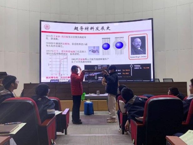 12月5日,老司机 副院长胡子阳率师生团队前往浙江工业大学附属德清高级中学,开展了一场别开生面的科普送课活动。此次活动以“超导磁悬浮探秘之旅”为主线,通过实验演示、互动体验与座谈研讨,为高中学生带来沉浸式科学体验,也为两校共建人才培育机制打开了新的合作空间。
