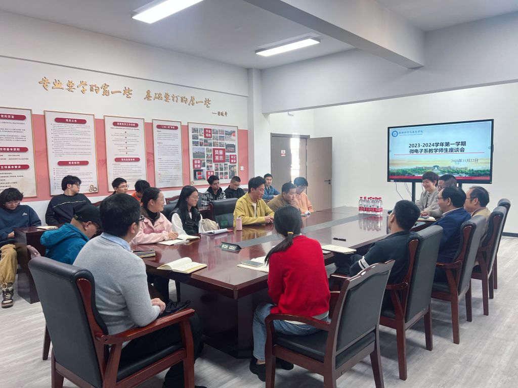 11月22日中午,微电子系在龙赛理科楼北楼228会议室顺利举行2023-2024学年第一学期期中师生座谈会。物理学院教学副院长胡子阳、副书记刘小娣、教务办主任、教师代表和微电子系学生代表参加了此次会议。会议由微电子系主任陈达主持。