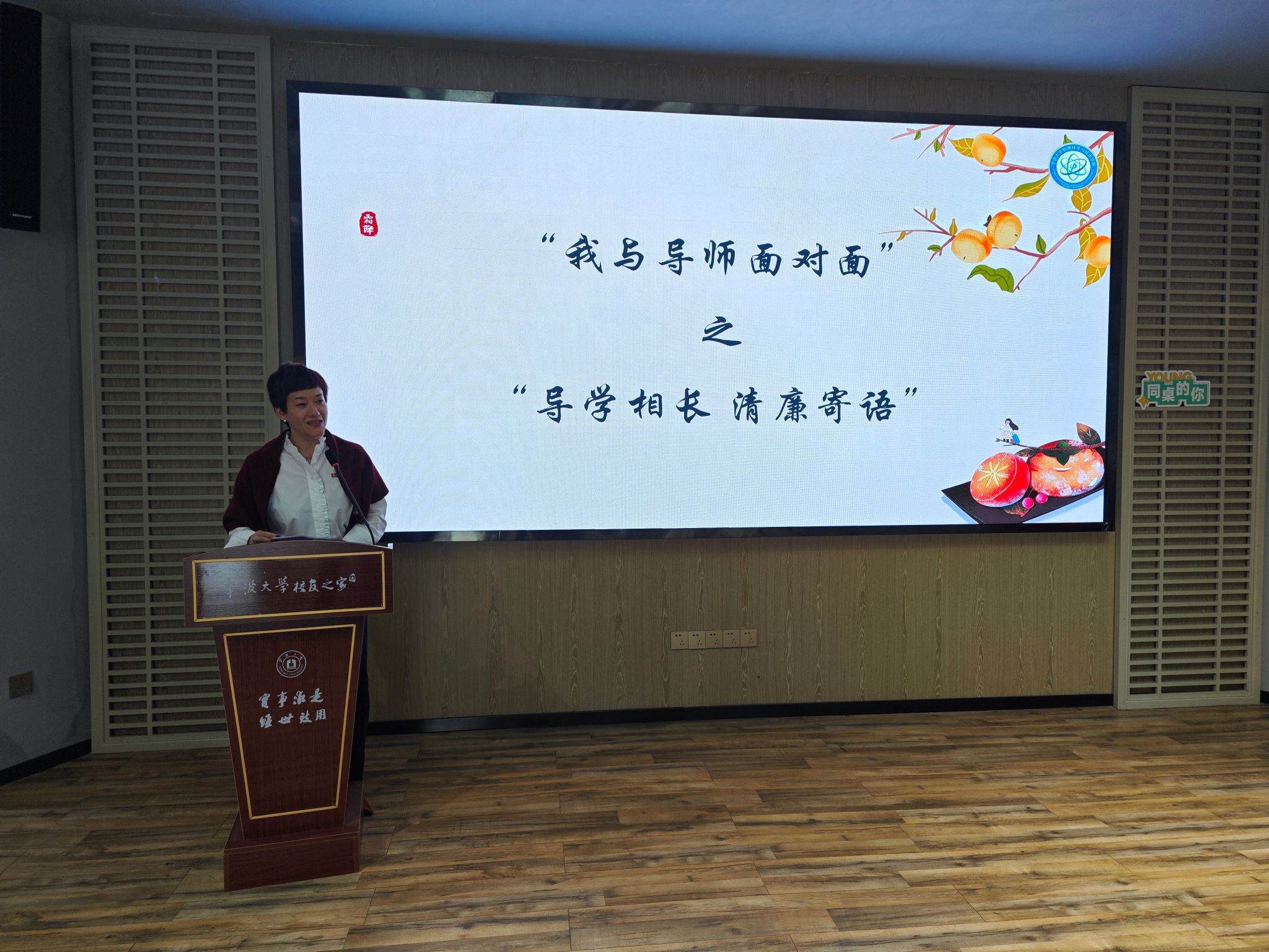 活动伊始学院党委副书记、纪委书记关工委副主任刘小娣结合多年学生工作经验深入浅出地分享构建和谐导学关系的核心要素,学院要构建师生民主平等、理解尊重、关系融洽的良性互动导学关系,是加强研究生培养和教育的基本要求。借霜降之契机,在秋风萧瑟、白露为霜的氛围中,勉励全体师生保持高尚的道德情操,坚持科研诚信,严于律己,以清正廉洁的态度面对学术研究与日常生活,共同营造风清气正的学术环境。随后,刘小娣发表了“清廉寄语”她借霜降这一节气,勉励全体师生在科研和日常生活中保持高尚的道德情操,坚守科研诚信,严于律己,以清正廉洁的态度面对学术研究,共同营造风清气正的学术氛围。她的讲话进一步激励了师生们在未来的科研道路上以更加坚定的信念和高尚的品德前行。
