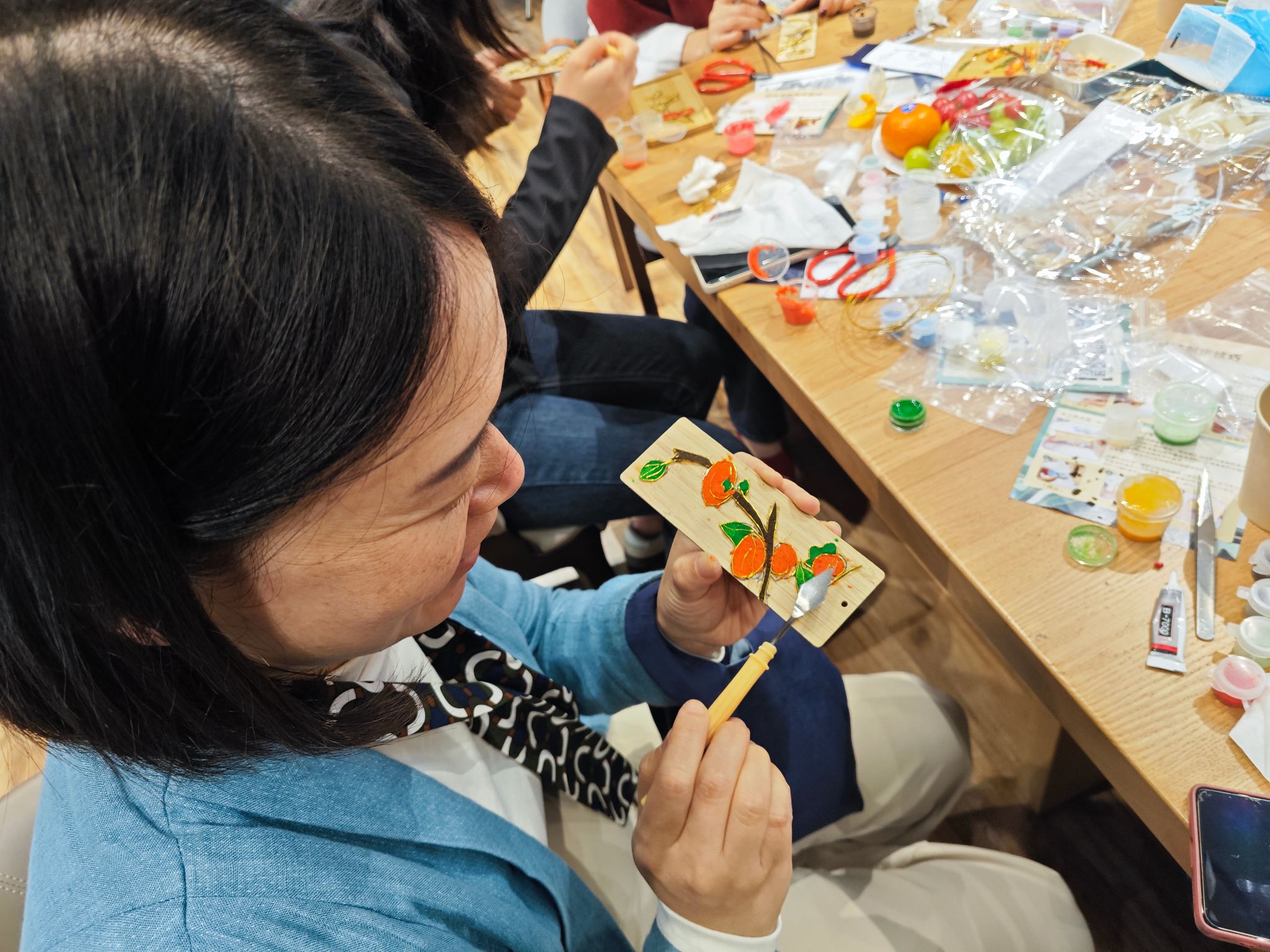 最后的手工互动环节更是将活动氛围推向高潮导师和学生们在专门指导老师的示范下,组队参与了“柿柿如意”掐丝书签制作。每位参与者亲手设计并制作的书签,不仅象征着对未来美好生活和科研成果的期许,更在过程中增进了师生之间的沟通与理解。活动结束后,大家纷纷展示自己的作品,现场充满了欢声笑语。