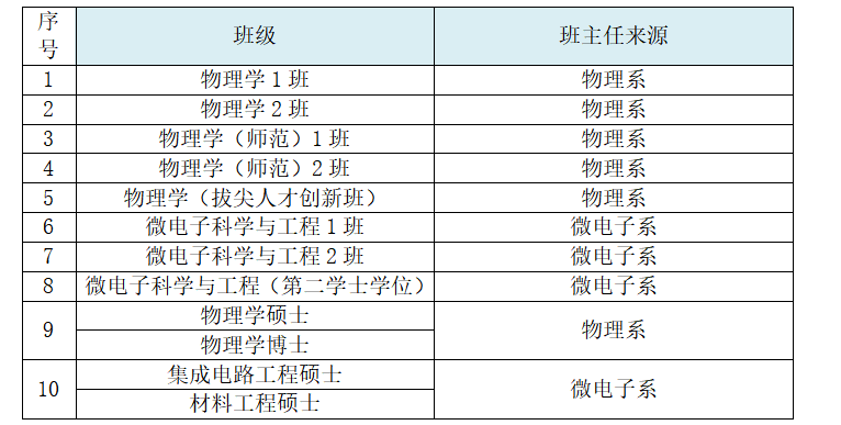 经初步测算,我院2024级拟需选聘班主任10人,其中物理系6人,微电子系4人。