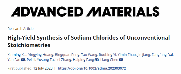 2023年09月09日,宁大物理学院微纳系统表面物理团队在《ADVANCED MATERIALS》(IF:32.0,TOP)在线发表题为“High-Yield Synthesis of Sodium Chlorides of Unconventional Stoichiometries”(非常规化学计量氯化钠的高产合成)的研究论文,该研究通过在还原氧化石墨烯膜(rGOM)上施加负电势实现了非常规化学计量的二维Na2Cl晶体的高产率合成,并发现该二维晶体具有独特的压电特性,为含有非常规化学计量二维盐晶体的实际应用迈出了重要一步。