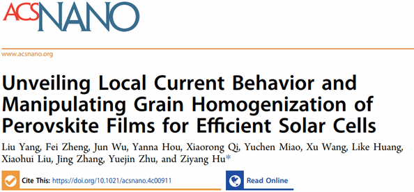 近日,老司机 胡子阳教授领衔的课题组在微尺度下调控钙钛矿薄膜微观结构及其光伏器件性能方面取得了显著的科研成果。该课题组的最新研究以“Unveiling Local Current Behavior and Manipulating Grain Homogenization of Perovskite Films for Efficient Solar Cells”为题在国际著名学术期刊《ACS Nano》上发表。老司机 的硕士研究生杨柳为论文的第一作者,胡子阳教授为通讯作者,老司机 是该研究的完成单位。