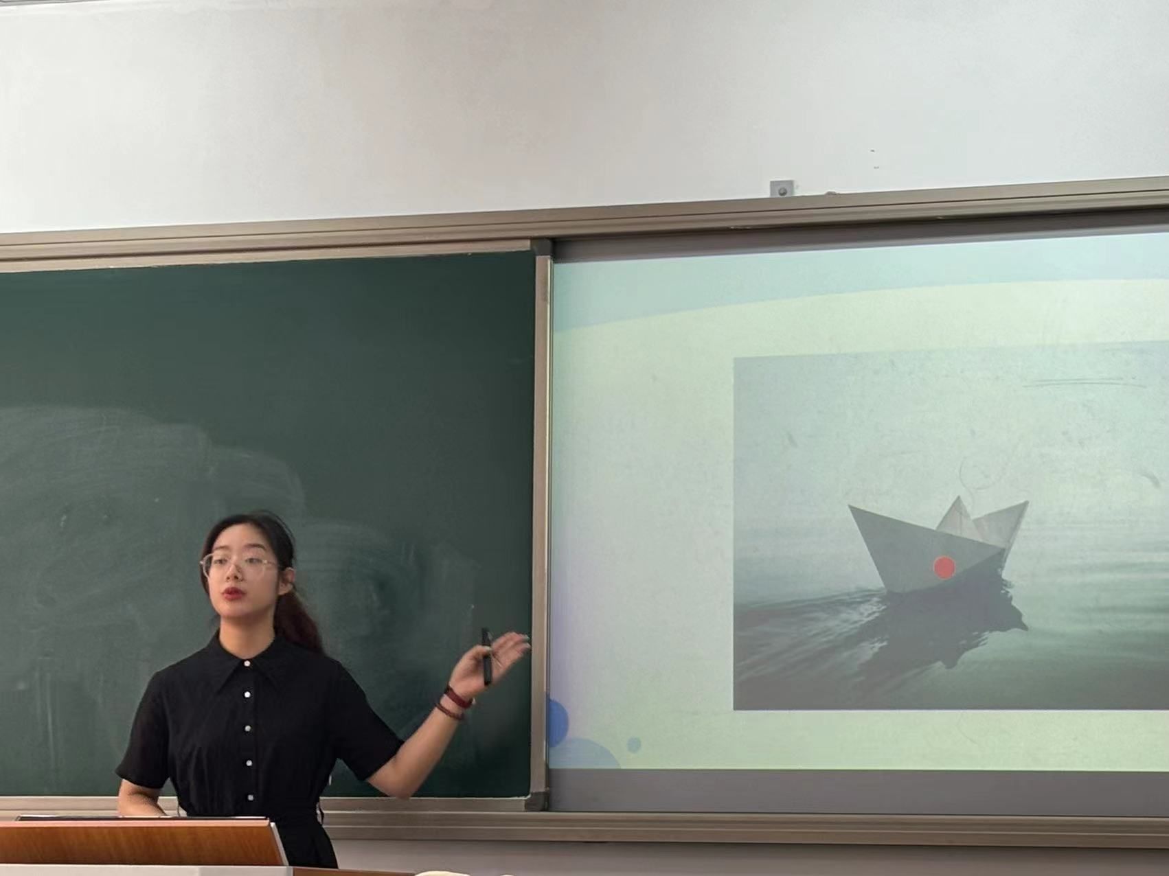 当天的决赛共分为“即席演讲”和“模拟上课”两个环节进行。选手们首先随机抽取演讲题目并准备,随后进行3分钟的即席演讲,演讲主要考察选手对于题目的理解准确度、临场反应能力、逻辑性以及语言表达能力。随后,选手们结合PPT进行10分钟的模拟授课,主要考察参赛选手的教学设计、多媒体课件制作、讲课与板书等方面的能力,并由评委老师进行打分。各参赛选手准备充分,教学过程设计合理,语言表达准确生动,教学方法独特新颖,在比赛中展现了我院师范学生良好的教学技能和学子风貌。来自于22级物理学师范班的学弟学妹们作为观众,现场为选手们的板书加油打气,并表示未来将向学长学姐们学习,努力提高自身的师范生技能。