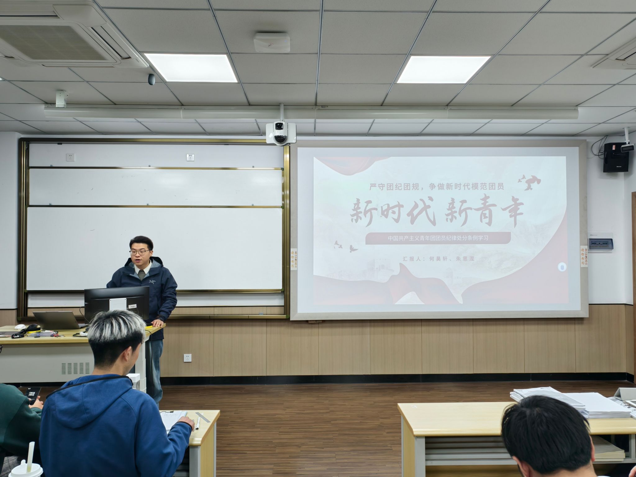 活动的第三个阶段,由22物师团支部和23物师团支部的两位团支书共同支持,他们带领两个支部的团员同志们一起深入学习了《中国共产主义青年团纪律处分条例(试行)》,团员同志们也结合自己的学习工作经历,展开了广泛的讨论。学院团委书记张锡炜老师最后总结道,团纪处分条例是我们高质量开展共青团工作的底线和保障,工作还是要秉持“教育为主,宽严相济”的原则,希望广大团员同志严守团纪团规,争做青年学子表率。