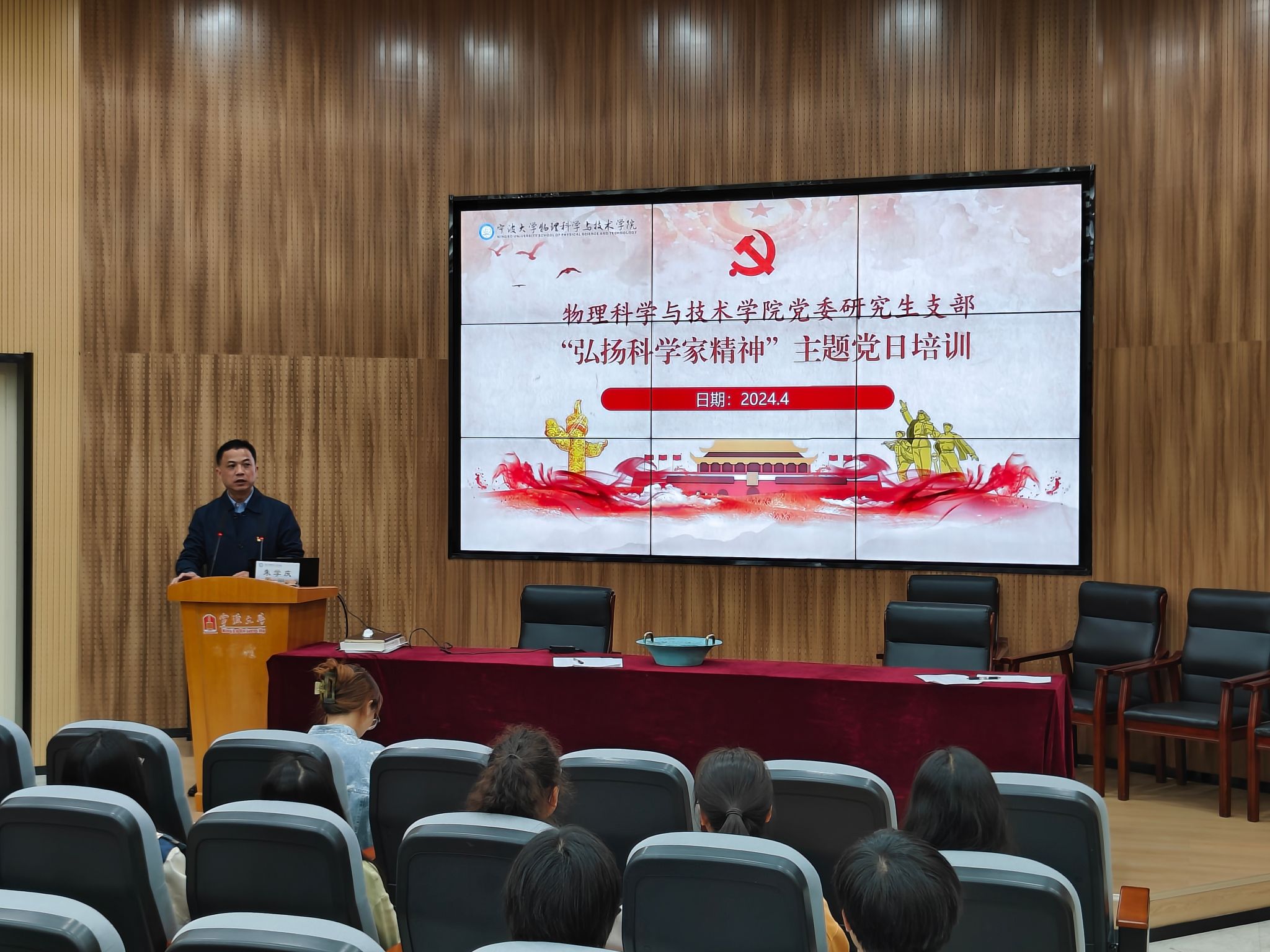 为深入贯彻党的二十大精神,推动物理学子将责任与担当转化为实际行动,以科学家精神贡献智慧和力量。4月17日下午,在学院龙赛报告厅先后开展本科生第一党支部、本科生第二党支部的“科普思政一体化,弘扬科学家精神”联合主题党日活动和研究生第一党支部、研究生第二党支部、研究生第三党支部的“讲述科学家故事,弘扬科学家精神”联合主题党日活动,学院党委书记、组织员、学生党建辅导员、学院团委书记、五个学生党支部的党员和积极分子等参与,活动由学院党委书记朱学庆主持。