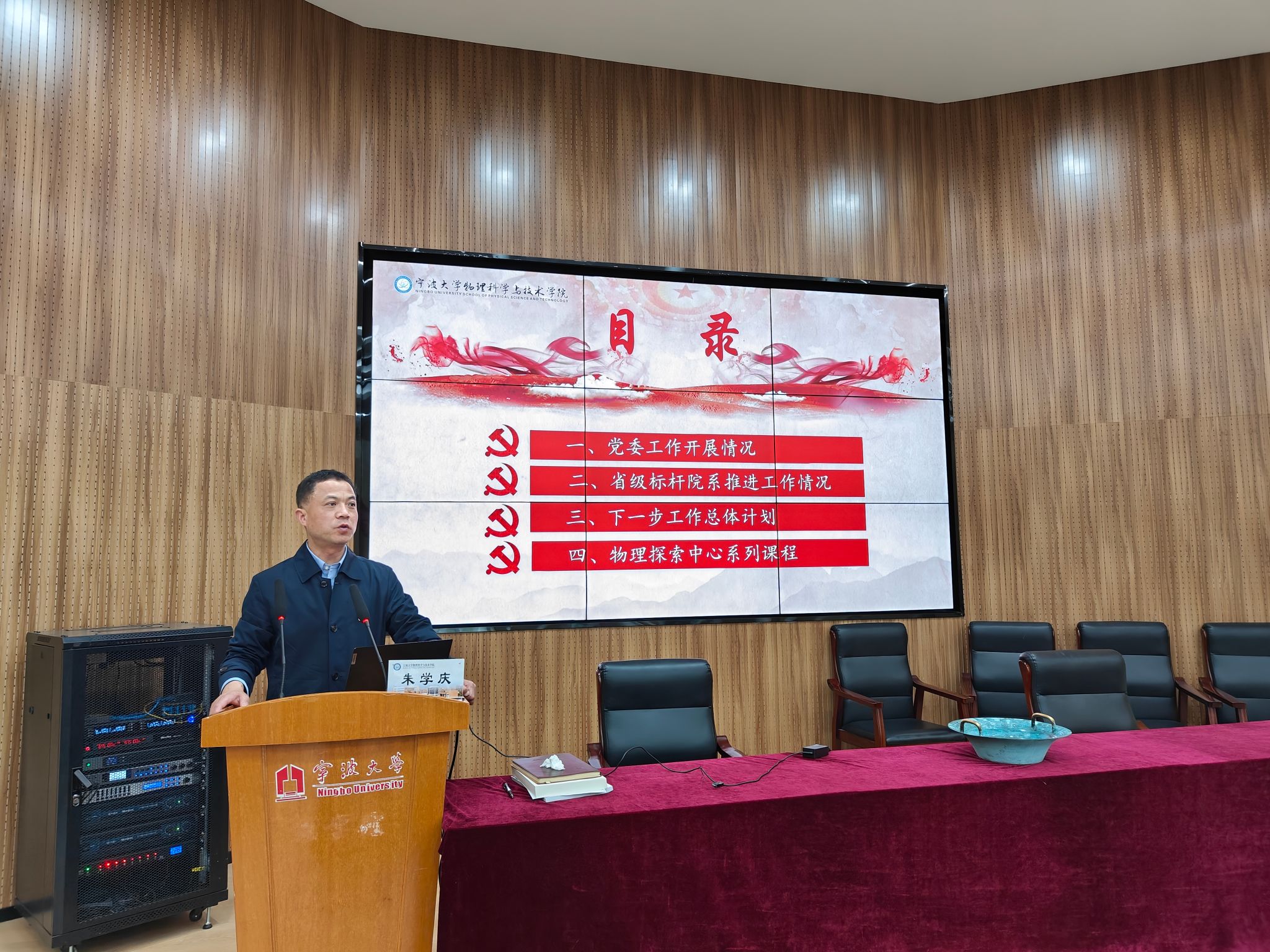 在介绍完学院党委现在的情况后,朱书记强调了标杆院系后续推进的工作安排,他表示学院将整合党委层面、党支部层面和党员层面,推动各支部大力弘扬科学家精神,校企地党建共同体通过“三维四体,创新铸魂”,推动科学家精神融入大中小学思政教育一体化建设。
