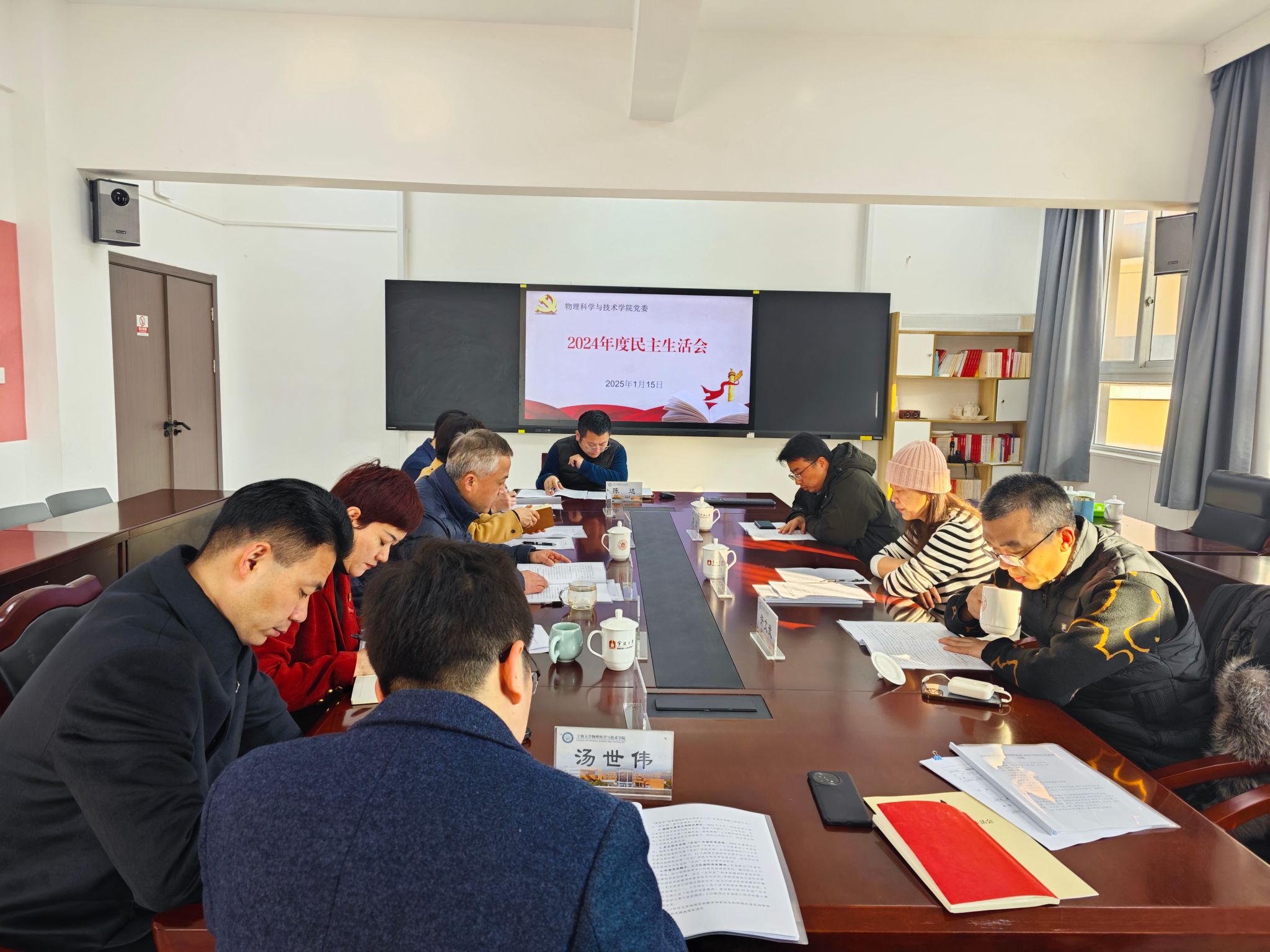 1月15日,老司机 党委在龙赛理科楼北楼228“党员之家”召开学院2024年度民主生活会,学院全体党委班子成员参加,校级组织员方晓春、党外人士代表胡军、教师代表许文武列席,会议由学院党委书记朱学庆主持。