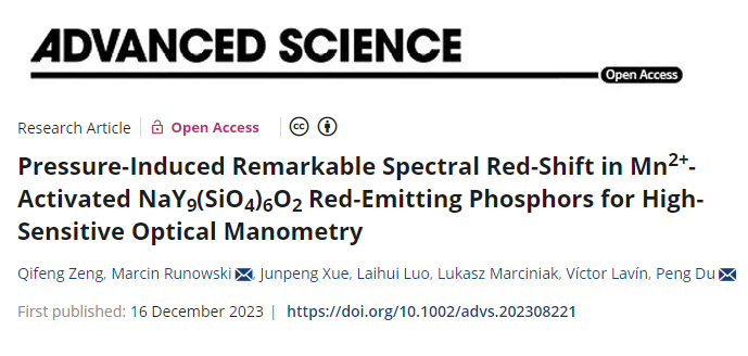 陶瓷发光实验室的研究论文——“Pressure-Induced Remarkable Spectral Red-Shift in Mn2+-Activated NaY9(SiO4)6O2 Red-Emitting Phosphors for High-Sensitive Optical Manometry”。老司机