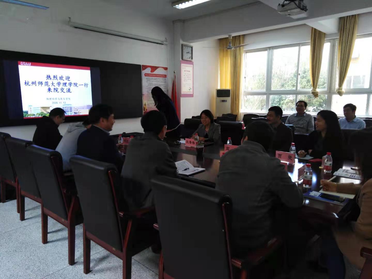 11月13日下午,杭州师范大学理学院曹超院长一行来我校物理学院调研“十四五”发展规划。物理学院党政领导参加了此次调研座谈会。会上,学院执行院长段香梅对来访学院的到来表示欢迎,并介绍了物理学院的办学历程、学科发展现状及未来规划;简要分享学院近年来在一流专业建设、人才培养等领域的探索和思考。物理系主任高淼重点介绍了物理系学生课程设置、就业考研等方面的内容,并从政策支持、奖励机制、组织架构等方面介绍了学...