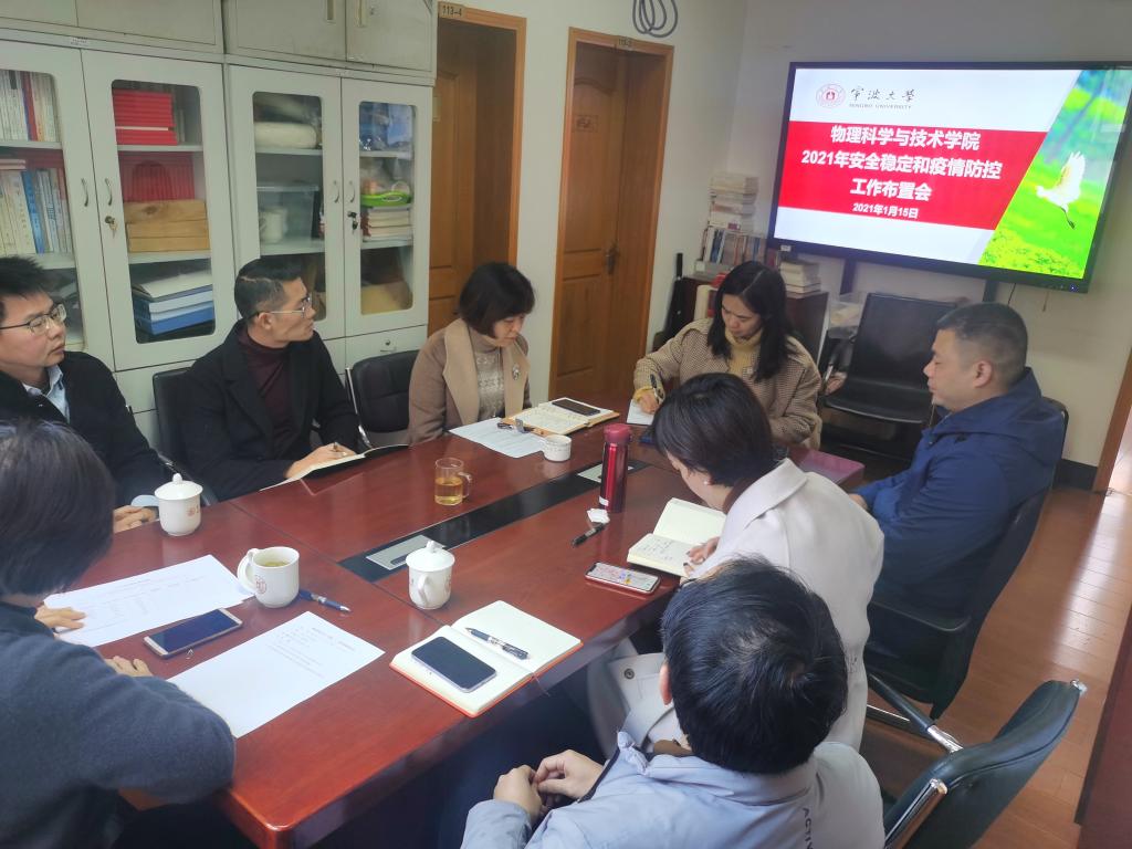 1月15日,物理学院召开安全稳定和疫情防控工作布置会。学院领导班子及部门负责人参加会议。会上,党委书记吴立爽传达了1月14日校安全稳定工作会议的精神和内容,并根据学校《关于做好2021年寒假及春节期间疫情防控和安全工作的通知》要求对学院安全和疫情防疫工作进行了部署。吴立爽书记强调要高度重视安全稳定和疫情防控工作,坚守底线思维,做到心中有责;切实做好安全隐患排查,包括实验室安全、行政办公区域等;疫情防控预...